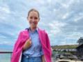 Ekaterina Osadchaya without makeup in a raspberry jacket walked in Odessa