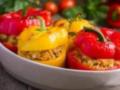 Peppers stuffed with beans, corn, rice and cashew cheese sauce. The best way to eat bell peppers!
